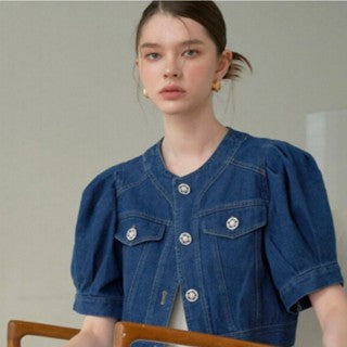 • [DK SHOP] 泡泡袖方扣短版牛仔夾克