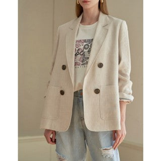 • [DK SHOP] Dominic 人字紋捲起開口亞麻夾克