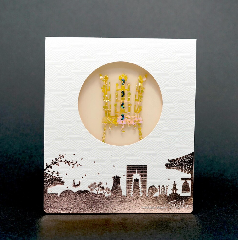 此文化遺產象徵新羅千年輝煌的文明。此貼紙以珍珠母的光澤,重新演繹金冠與曲玉 (gokok) 裝飾的奪目之美。
