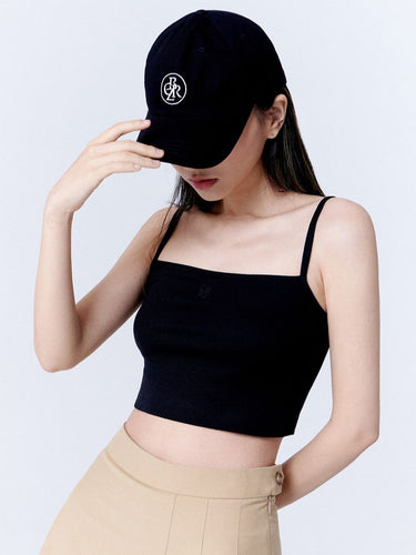 CITYBREEZE Logo刺繡黑色短版細肩帶上衣