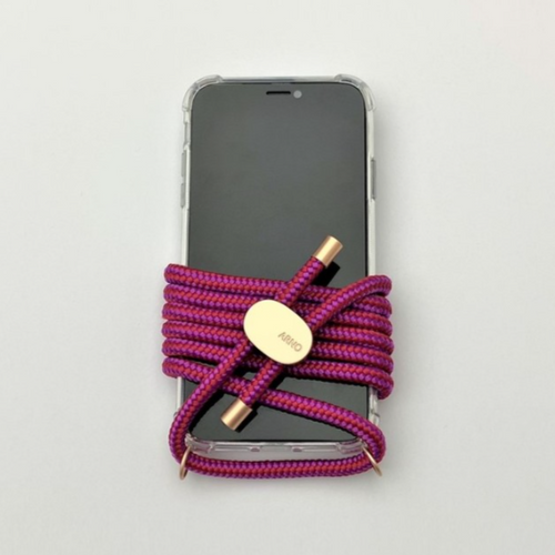 ARNO 可拆式 編繩背帶透明手機殼_玫瑰紫