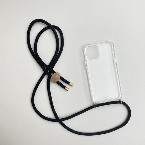 ARNO 可拆式 編繩背帶透明手機殼_素面黑