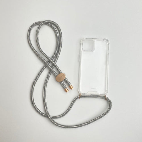 ARNO 可拆式 編繩背帶透明手機殼_大理石銀