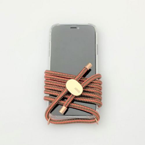 ARNO 可拆式 編繩背帶透明手機殼_卡其紅